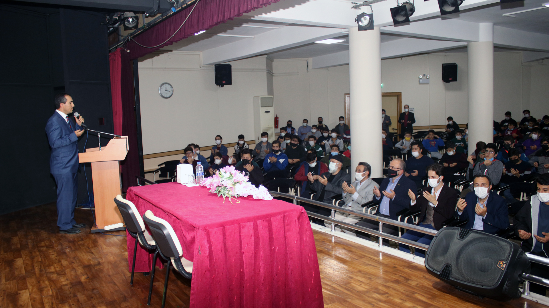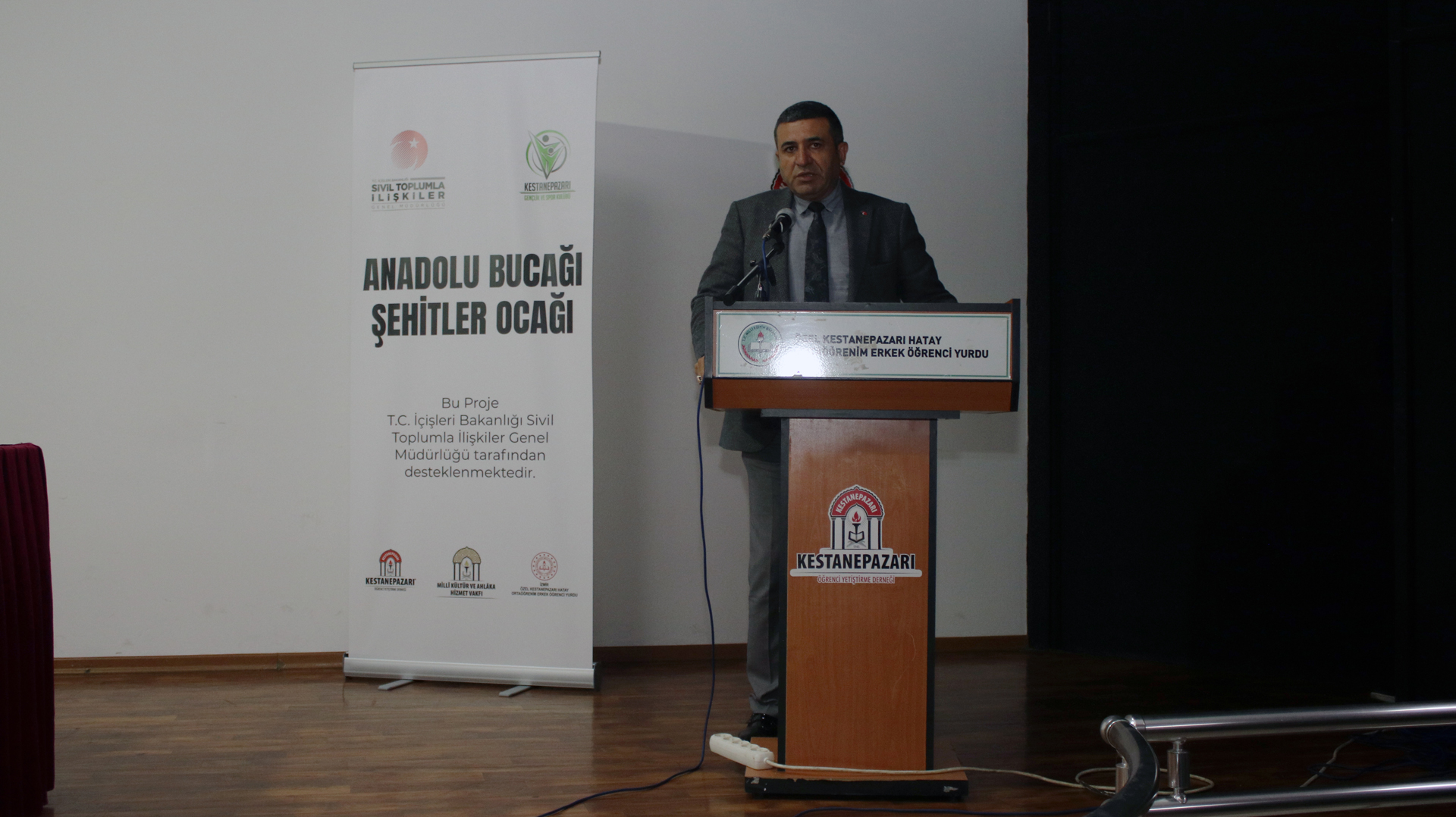 Halil Kandemir’in sunuculuğunu üstlendiği program tüm şehitlerimiz ve ahirete irtihal etmiş gazilerimiz anısına yapılan 1 dakikalık saygı duruşu ve İstiklal Marşı ile başladı. İstiklal Marşı’nın ardından Kestanepazarı Hatay Kur’an Kursu Öğreticisi Kur’an-ı Kerim Güzel Okuma Yarışması Dünya İkincisi İmam Hatip Hafız Enes Kaput Kur’an-ı Kerim Tilaveti yaptı. Okunan Kur’an-ı Kerim’in ardından açılış konuşmalarını yapmak üzere kürsüye çağırılan Kestanepazarı Yönetim Kurulları Başkanı Cüneyd Dayhan, hazirunu selamladıktan sonra Kur’an-ı Kerim’den, Bakara Suresi 154. Ayetin mealini dile getirerek, “Allah yolunda öldürülenler için “ölüler” demeyin. Hayır, onlar diridirler, fakat siz bilemezsiniz.” dedi. Bu inanç ve imanla Ahmet Alp Taşdemir’in bizler göremesek de bilemesek de yanımızda olduğunu belirten başkan Dayhan, öğrencilerden şehit ağabeyleri Ahmet Alp Taşdemir’in mirasına sahip çıkıp çıkmayacaklarını sordu. Salondaki tüm öğrenciler hep bir ağızdan şehit ağabeylerinin miraslarına sahip çıkacaklarına, vatan, millet ve Dini Mübin için yılmadan yorulmadan çalışacaklarına söz verdi. Öğrencilerin söz vermesi üzerine Başkan Dayhan Şehit Babası İbrahim Taşdemir’e dönerek, “Alp’in mirası buradaki gençlerdir. Bu gençlerin hepsi sizin manevi evladınız” dedi.